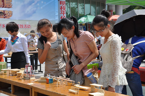 本网讯(牛山林,摄影:杨志敏)6月13日,土木与环境工程学院在翰林广场举办工业设计作品展。本次作品展以“工业设计,让美进入生活”为主题,展出了平面构成、色彩构成、立体构成、速写等100多件优秀作品,吸引了众多师生到场观看。
