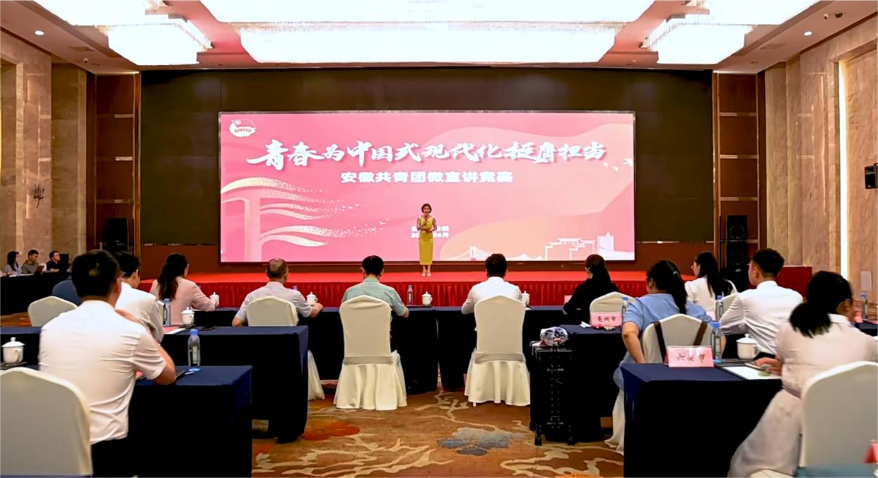 本网讯(通讯员:李静)为深入学习宣传教育习近平新时代中国特色社会主义思想,创新宣讲形式,培养骨干力量,坚持以赛促学、以赛促讲,持续推动党的创新理论“飞入寻常百姓家”,6月28日下午,由共青团安徽省委主办的“青春为中国式现代化挺膺担当”微宣讲竞赛活动在合肥顺利举行,来自各地市选拔推荐的22名参赛选手同台竞技。