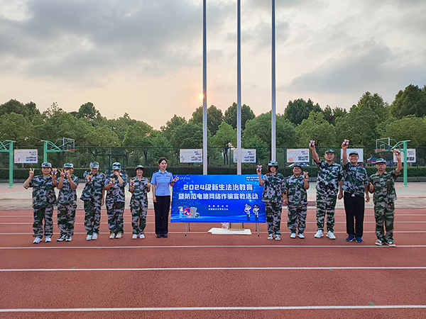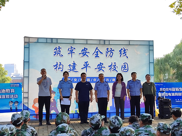 本网讯(通讯员:张大勇 摄影:李武军 侯帅)为进一步提升2024级新生的法治意识和识骗防骗能力,9月5日、6日,bat365保卫处、学生处联合高新派出所、兴园中心香樟社居委深入新生军训训练场,开展新生安全教育第一课——2024级新生法治教育暨防范电诈宣教活动。高新派出所居副所长董维标、民警程永兵,香樟社居委书记洪家汪,学生处处长芮萍参加了首场宣教活动,活动由保卫处副处长仇陶主持。