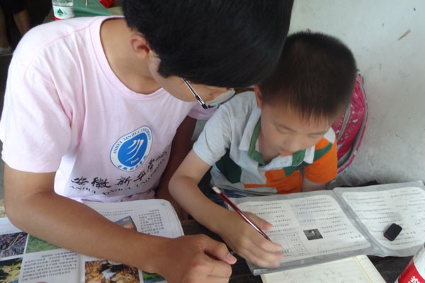 以关爱留守儿童为重点,组织实践队员到乡镇农村,为当地中小学生进行课业辅导、素质拓展、亲情陪伴等活动。