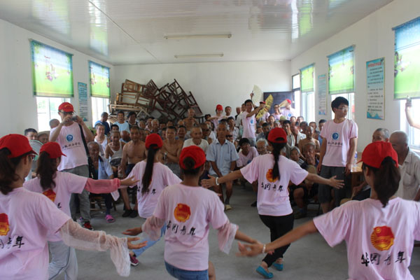 走进茂林敬老院,慰问生活在那的100多位孤寡老人,开展一对一亲情陪伴、慰问演出活动。老人们对大学生的到来十分开心,纷纷拿出零食给大家吃,有的老人还送给队员自己的书画作品。队员们帮老人们整理内务、做家务、揉肩捶背,并与老人们交谈。一对一亲情陪伴结束后,开展慰问演出活动,一些身体残疾的老人不能自己来看演出,队员们背着老人们到达活动室。老人们和队员们一起唱红歌,观看队员们表演的舞蹈、器乐、歌唱等丰富多彩的节目。