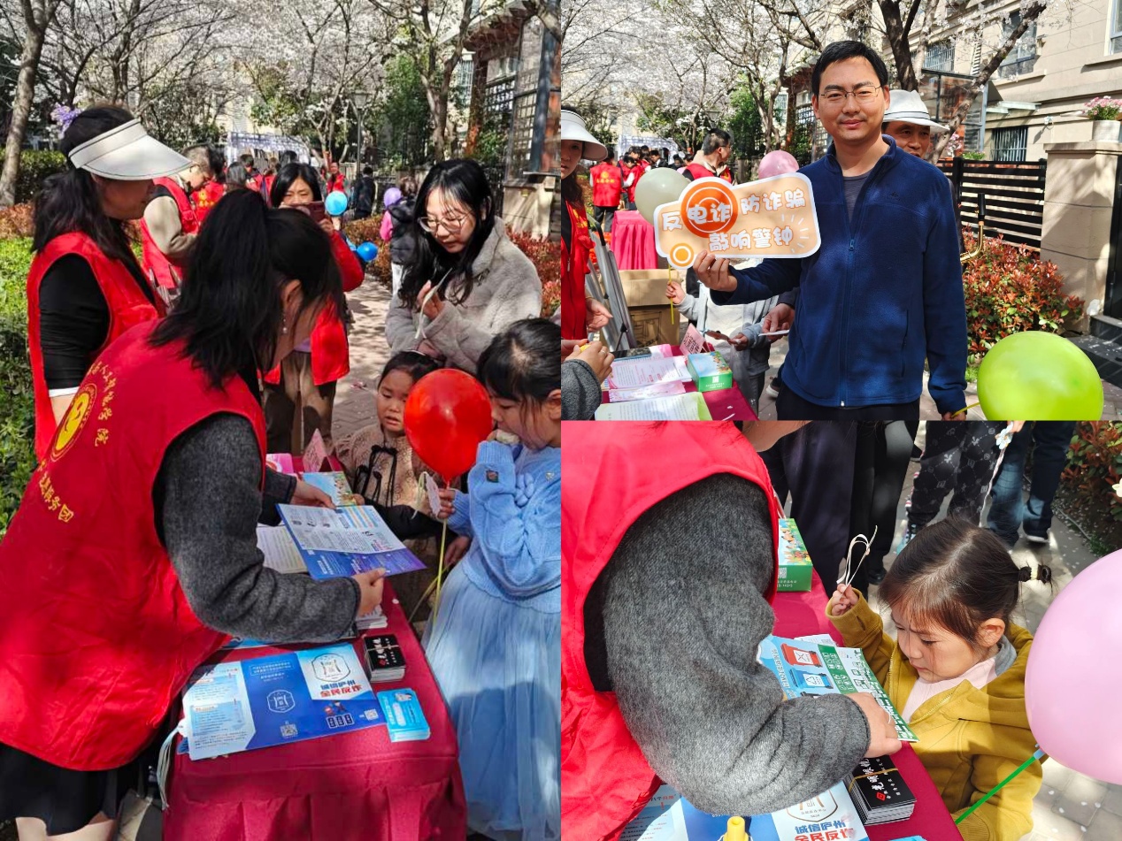 在游客服务中心,志愿者王雪手持精心制作的纸质导览图,为游客详细标注樱花观赏路线与互动活动时间:"上午十点的汉服巡游在樱花大道中段,下午两点的手工体验区可制作樱花书签。" 遇到行动不便的游客,志愿者钱静主动提供全程陪同服务,用细节传递关怀温度。 游戏互动区成为亲子家庭的聚集地,曾飞扬同学设计的樱花主题反诈小游戏巧妙融合知识科普与趣味互动。"通过角色扮演让小朋友记住' 不轻信陌生链接',这种教育方式很有新意。" 社区居民李女士的肯定,折射出志愿服务的创新成效。