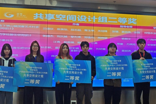 本网讯(通讯员:尤晓旭)近日,第十九届中国好创意暨全国数字艺术设计大赛——产教融合空间设计工作坊(计时赛)全国总决赛圆满落幕。由周蕾、尤晓旭两位老师指导的两支学生团队凭借出色的创新设计与实践能力,在激烈竞争中脱颖而出,双双斩获国赛二等奖,展现了学院在应用型人才培养和产教融合领域的丰硕成果。