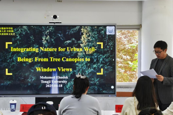 同济大学助理教授Mohamed以“Integrating Nature for Urban Well-Being: From Tree Canopies to Window Views”为题,探讨了自然景观对心理健康的积极影响,并提出建筑设计中自然元素的立体化融合策略。他强调,生态美学与可持续性应成为城市空间优化的关键考量。