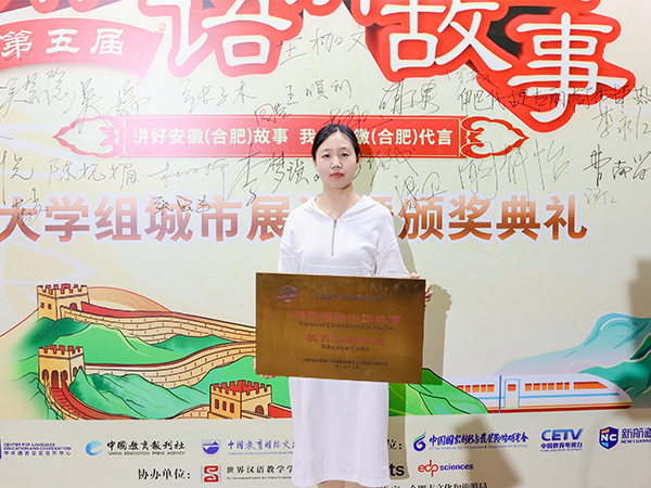 本网讯(通讯员:黄亚萌)5月10日,第五届“用英语讲中国故事大会”安徽地区大学组城市展演在合肥圆满落幕。大会由中国国家创新与发展战略研究会、中国教育电视台、新航道国际教育集团联合主办,合肥选区由共青团合肥市委员会、合肥市人民政府外事办公室、合肥市文化和旅游局指导,由安徽省翻译协会、安徽省外国留学生教育管理学会、新航道合肥学校、合肥新航道前程留学公司主办。此次展演汇聚了来自中国科学技术大学等全省13余所高校的学子,他们以英语为桥梁,生动展现安徽青年对家乡文化的深度解读与创新表达。bat365学子吴慧慧和陈恺凭借现场的优异表现,荣获“传播之星”称号,外国语学院借此契机正式成立“用英语讲中国故事”教育实践基地,为学校的文化传播与外语教育开辟了新的篇章。