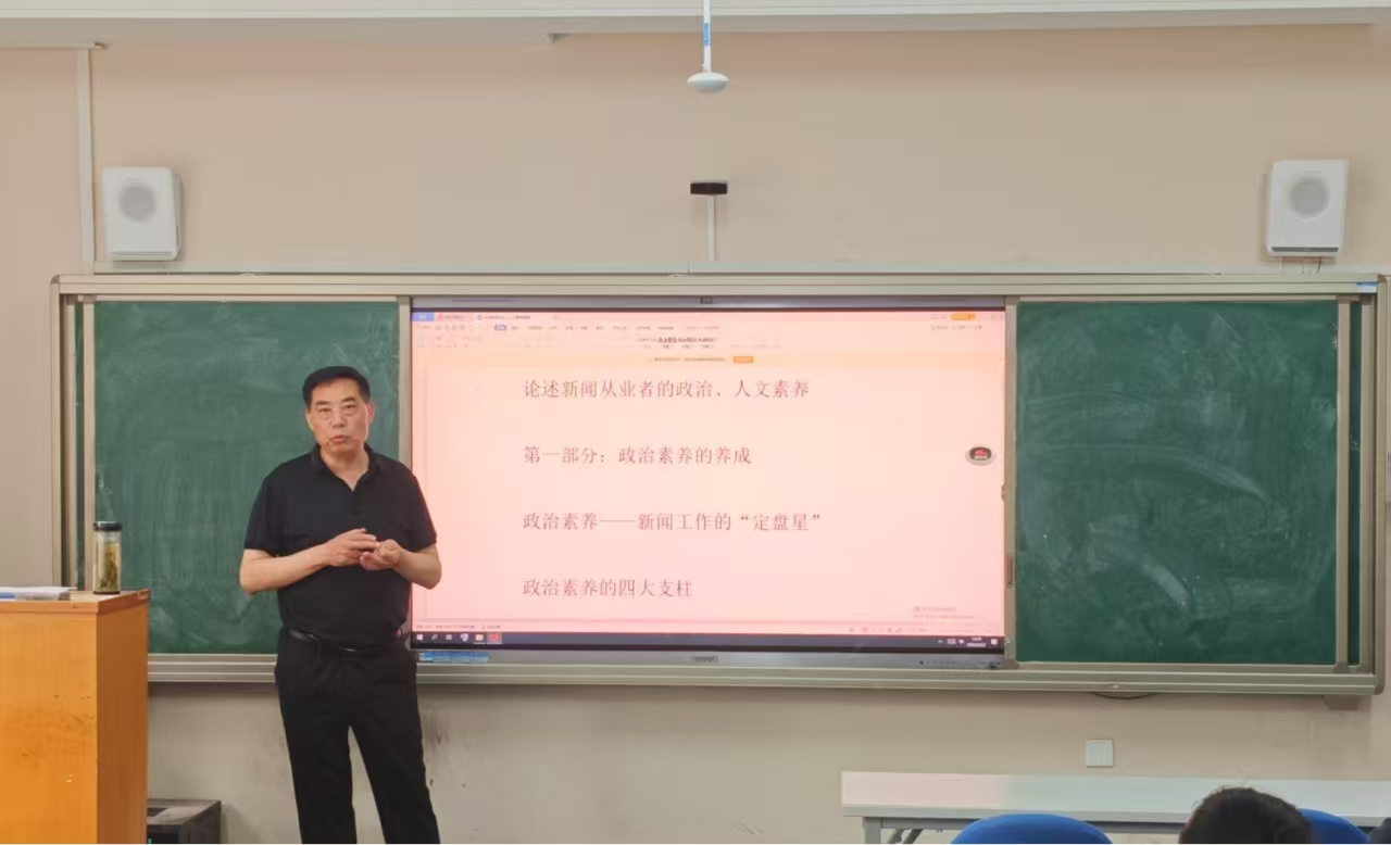 张大鹏教授以“政治素养是新闻事业的定盘星”为切入点,系统阐释政治立场、政治观点、政治纪律、政策水平四大核心要素。他强调,新闻从业者需通过“理论学习 + 实践淬炼”双轨并行提升政治素养,精读马克思主义新闻观经典著作,建立系统化政治认知框架;把握政策,实时跟踪国家战略部署,确保新闻报道与时代脉搏同频共振;实践打磨,在基层调研、重大主题报道中强化政治敏锐性,以实践检验理论认知。