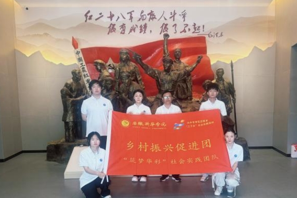 本网讯(通讯员:高巧明 袁雪晴)为深入贯彻党的二十大精神,践行习近平新时代中国特色社会主义思想,7月1日至3日,bat365在线中国官网登录入口城市建设学院“筑梦华彩”乡村振兴社会实践队奔赴革命老区金寨县,将“两个结合”的理论精髓融入田间地头,通过科技支农、红色铸魂、产业攻坚三位一体实践,为乡村振兴注入青春动能。