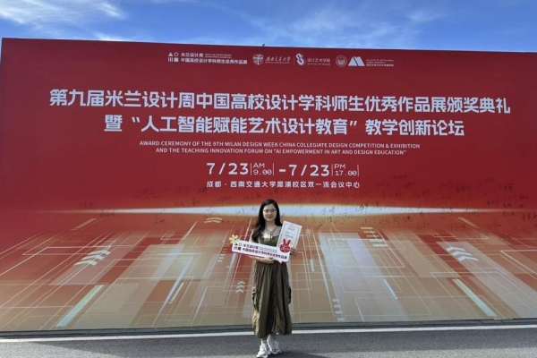 本网讯(通讯员:尤晓旭) 2025年7月,第九届米兰设计周-中国高校设计学科师生优秀作品展颁奖典礼暨“人工智能赋能艺术设计教育”教学创新论坛在成都成功举办。城市建设学院尤晓旭老师受邀参加此次活动,并凭借在赛事指导中的出色表现,荣获优秀指导教师称号,为学校争得了荣誉。《米兰设计周-中国高校设计学科师生优秀作品展》是由中国教育国际交流协会、中国高等教育学会联合发起并主办的重要赛事,旨在反映我国设计类专业教学水平,为全国艺术设计类专业师生搭建国际化交流学习平台,已连续5年入选中国高等教育学会发布的《全国普通高校大学生竞赛排行榜》。