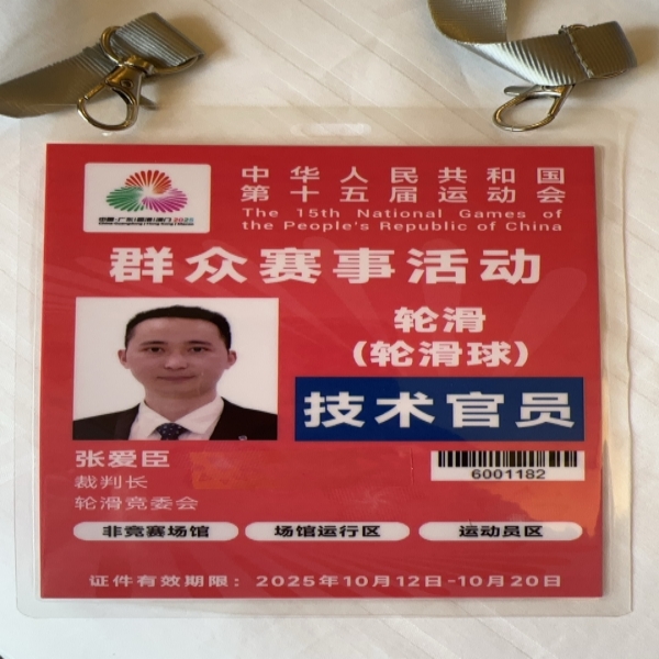 十五运是国家体育总局主办,广东省、香港特别行政区、澳门特别行政区共同承办的全国性大型综合运动会,是我国规格最高、规模最大、影响力最广的体育盛会之一。单排轮滑球首次进入全运会,它是一项集技巧、速度与协作于一体的新兴竞技运动,竞赛组织与执裁工作至关重要,裁判长更是担负裁判团队的核心职责,张爱臣此次受选,是国家体育总局、赛事委员会对其个人在该领域权威地位和卓越能力的高度认可。在赛前筹备与赛事期间,他全面负责裁判团队的组建、培训与管理,深入解读竞赛规则,精准把控赛场判罚尺度,以其冷静的裁决、丰富的经验和严谨的作风,确保了整个赛事在公平、公正、公开的原则下顺畅运行,为全国观众奉献了一场场精彩、规范、高水平的单排轮滑球对决,为该项目在全运会历史上的成功首秀奠定了坚实基础。
