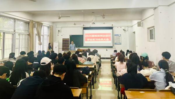本网讯(通讯员:朱书悦)近日,艺术学院隆重召开关于2026届毕业实习动员大会,视觉传达设计专业、美术学专业、动画专业、环境设计专业、表演专业分别举行了专题毕业实习动员会议,为即将踏入实习岗位的毕业生们指明方向、明确要求。