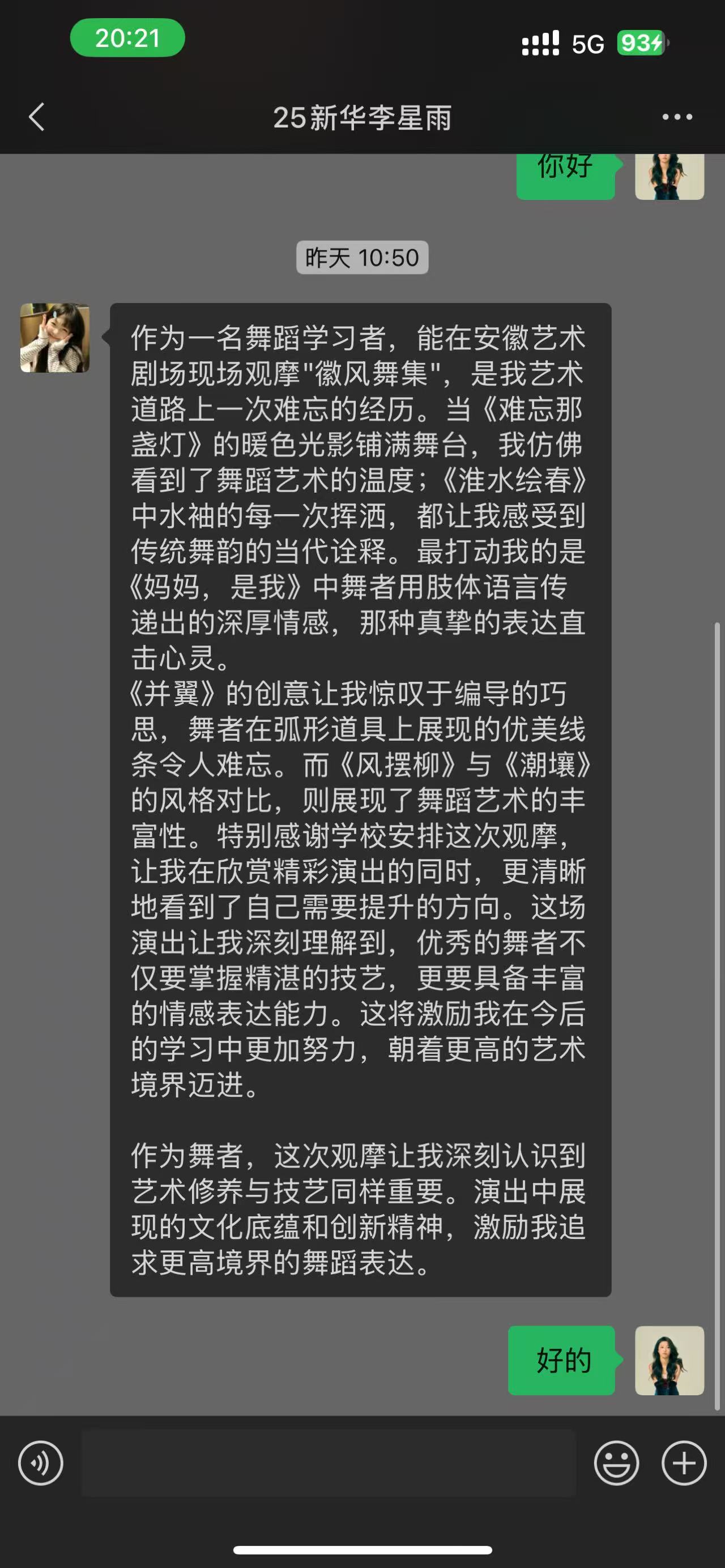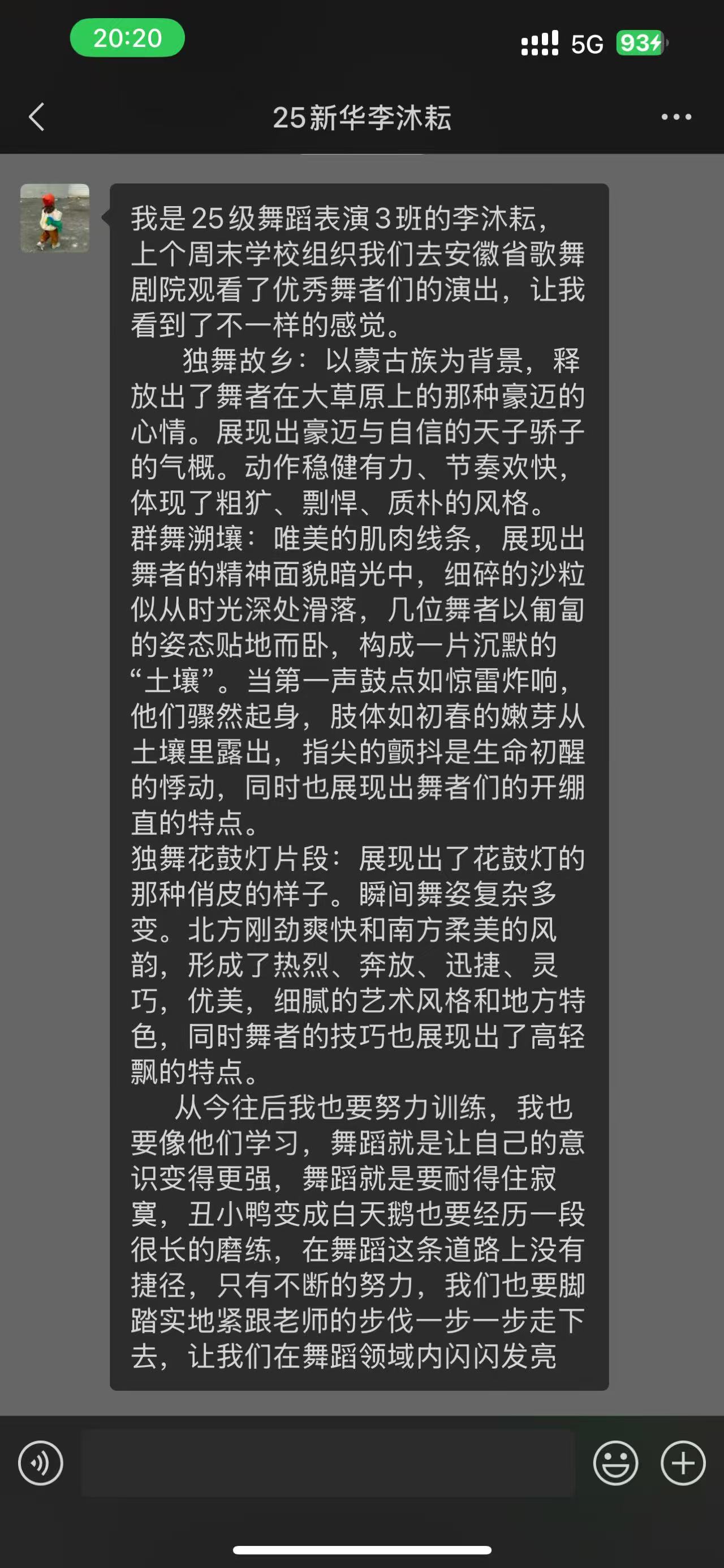 从双人舞《并翼》中鸟儿灵动的姿态里,师生们领略到舞蹈对生命活力的细腻诠释;在现代舞《溯壤》沉默而坚韧的肢体表达中,感受到"向下扎根、向上生长"的精神力量;双人舞《妈妈,是我》则以温情笔触演绎爱与唤醒的故事,用极致的情感张力触动在场每一位观众的心弦。最终登场的群舞《淮水绘春》以恢弘笔触绘就江淮大地的春日图景,将整场演出的氛围推向高潮,现场不时响起热烈掌声