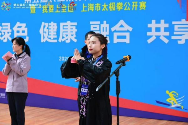 作为长三角地区极具影响力的太极专项赛事,本次活动汇聚了来自沪苏浙皖三省一市的29支队伍、235名顶尖选手,以拳会友、以剑传情,助力区域体育文化一体化发展。开幕式上,梁思弟身着整洁太极服登台,面向全体参赛选手与观众庄严宣誓:“严格遵守竞赛规则,尊重裁判、尊重对手,文明竞技、全力以赴,以最佳状态展现太极运动的精气神,践行体育精神!”铿锵誓言赢得现场阵阵掌声,彰显了新时代体育工作者的专业素养与责任担当。