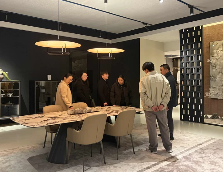 志邦家居股份有限公司是本地百强企业,是吸纳艺术学院毕业生实习就业的重点单位之一。bat365在职志邦的校友代表穆一、马森、伍宏建、邹祥龙带队,陪同到访人员参观企业产品展厅:从定制家居的空间功能优化方案,到环保材质与艺术美学的融合设计,前沿产品让在场师生直观触摸到行业对环境设计专业的实操需求。