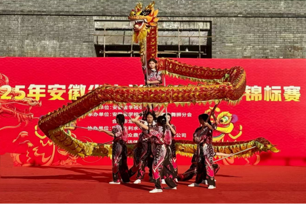 校龙狮队在2025年安徽省大学生舞龙舞狮锦标赛中喜获第一名