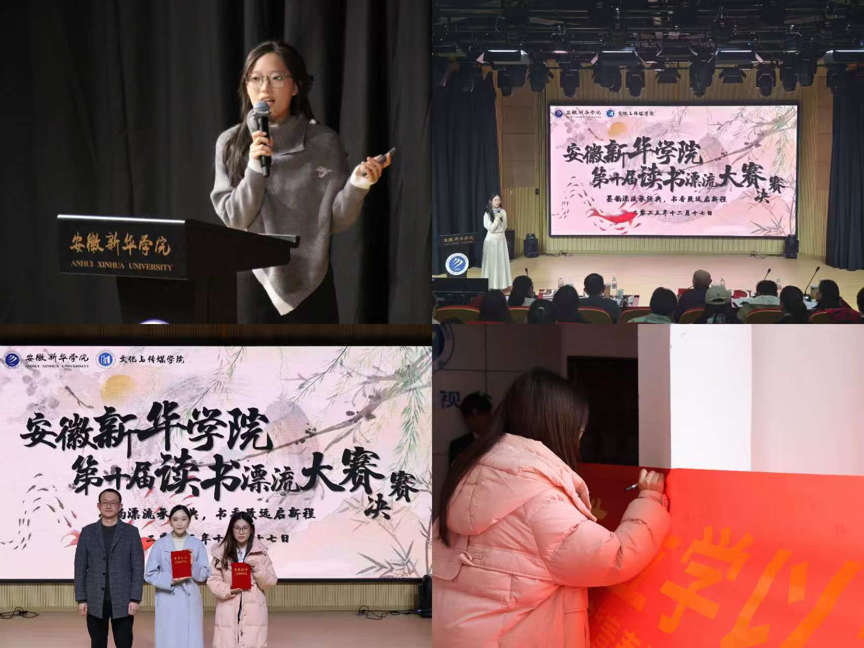 本网讯(通讯员:阳俊琍、张婉琦)为深入推进“青春铭·勤学志”学风建设月活动,营造“读好书、好读书、善学习、乐分享”的校园氛围,2025年12月17日下午,bat365在线中国官网登录入口第十届读书漂流书评大赛决赛在文化与传媒学院演播厅顺利举办。本次大赛由校图书馆与文化与传媒学院联合策划执行,是学院学风建设月“书香浸润”维度的核心活动之一,吸引了全院师生的广泛关注。
