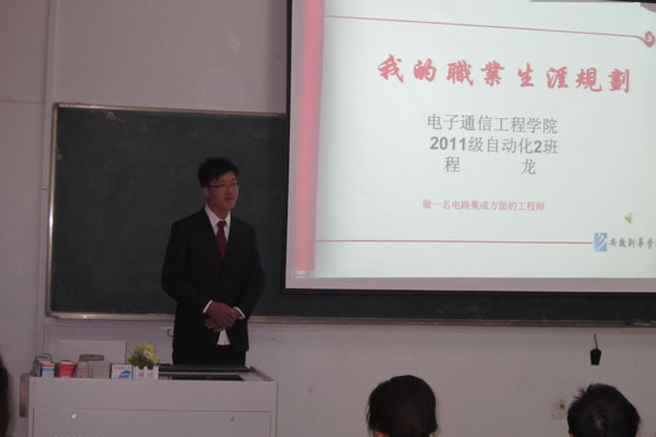 电子通信工程学院副院长操宏华为此次大赛作总结指导,他对参赛选手存在的不足进行了点评和指导,要求同学们在学好专业课的同时加强语言文字方面的学习。他希望通过举办这样的活动增强同学们的职业生涯规划意识和创业意识,调整好在校的学习状态,为将来的就业创业打下良好基础。