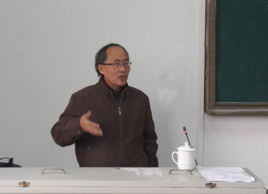 本网讯(徐天戍)12月18日下午,合肥工业大学外国语学院林玉鹏教授为师生们作题为“当代美国诗学范式探”的学术讲座。外国语学院中青年教师和部分学生听取了报告,外国语学院院长任静生教授主持讲座。