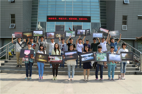 比赛除了为获奖同学颁发获奖荣誉证书和奖品外,举办方还特别为每位获奖选手制订了摄影作品的PT展示板,获奖同学在图书馆门前合影留念。