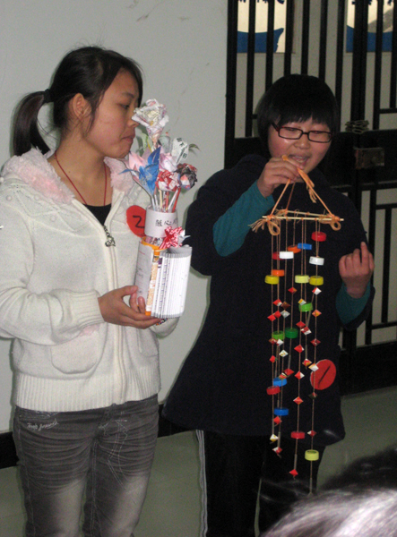 此次环保作品比赛分为两个部分:环保服饰和环保手工艺品。大赛吸引了广大同学积极踊跃的参与,各个班级精心设计出了许多很有创意的环保生活作品。同学们通过自己的双手变废为宝,有的环保作品极具欣赏价值。