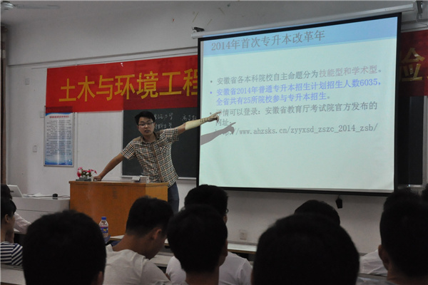 本网讯(俞士毛)6月10日,土木与环境工程学院分别举行考研及专升本经验交流会。交流会分别就“考研” 和“专升本”两个学生关注的话题,组织部分专升本与考研成功的学生介绍经验和体会,并就如何备考与考试过程中应注意的事项等问题与学生进行了深入的交流。