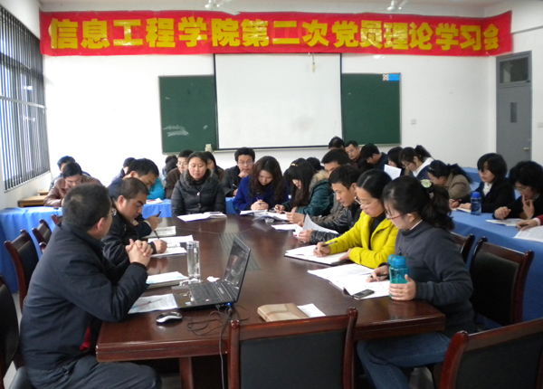 4月14日中午,信息工程学院党总支组织全体教师党员和思政工作者对《国家中长期教育改革和发展规划纲要(2010-2020年)》(公开征求意见稿)进行学习。总支副书记主持会议并带领大家学习。