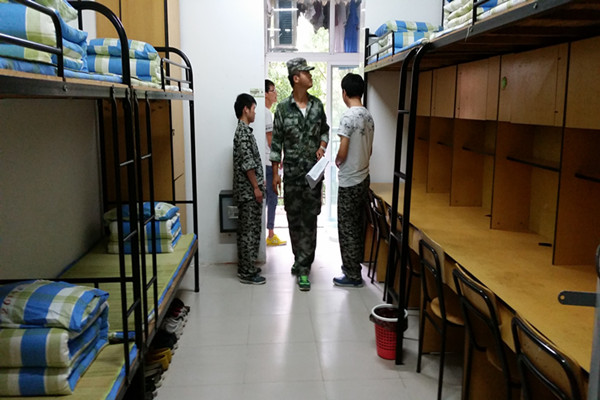 电子通信工程学院高度重视内务工作,在军训之初即要求教官强化内务训练。在室外训练的同时,穿插内务教学。教官深入宿舍向学生现场演示内务标准,指导学生如何整理个人物品。辅导员通过班会、深入宿舍、新老生交流等多种形式向他们说明良好个人习惯养成的重要性,指导大家清理卫生死角,合理利用寝室空间。