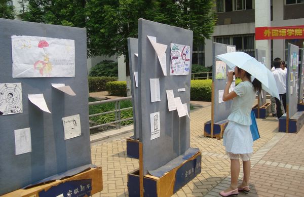 为积极响应学院心理宣传月活动,给同学们提供一个展示自我、分享阳光心灵的舞台,外国语学院举办了首届“5·25”心理健康宣传月涂鸦及征文比赛,并于6月7日中午在外国语学院门前对优秀作品进行展示。