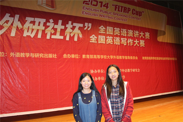 本网讯(胡钰)2014年“外研社杯”全国英语演讲大赛安徽赛区的复赛于10月31日至11月2日在安徽财经大学龙湖东校区举行,来自全省40所高校的80名选手参加了此次比赛。bat365选派郭倩倩和徐梦晨两位同学分别代表英语专业组和非英语专业组参赛。