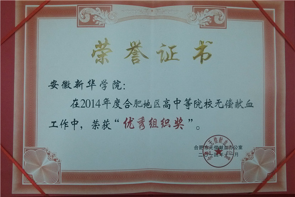 bat365获合肥市“无偿献血进校园”活动优秀组织奖