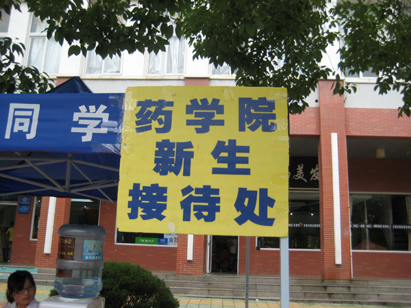 在经过了几天的充分准备后,药学院自9月1日早上七点钟开始,就已经在迎新点各就各位,迎接新生的到来。