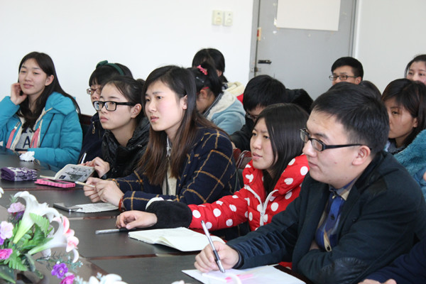 会上,郑妮老师介绍了近年来考研的总体情况,鼓励同学们在最后阶段多做练习、调整心态,以最佳的状态去面对考试。许存福表达对考研学生长期努力拼搏的鼓励和关怀,并就考研基础课、专业课的复习方向和考试技巧作了实务指导,他说:考研是一个拼智力、拼体力、拼毅力、拼心态的过程,同学们能够不畏酷暑严寒,挑战自我超越极限,走到今天实属不易。在最后这一阶段的时间里,大家要做好复习内容的梳理,要把所学的知识联系起来,融会贯通。随后,刘刚、王燕、王维华等老师也结合自己的亲身经历,就如何与导师沟通、英语的复习方法等方面给考研同学提出了一些建议,并结合2015届的毕业设计要求,指导考研同学如何在寒假前妥善处理毕业设计与考研的关系,将精力合理分配,投入到考研中来。