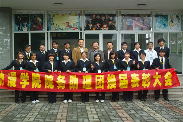 动漫学院院务助理团成立于5月18日,时间虽短但发展迅速,至今已有五个部门60多人。成立之初,院领导创造性地将学生预备党员纳入助理团再教育再培养,极大地扩充了助理团队伍,增强了助理团的实力。经过将近半年的打造和磨练,动漫学院院务助理团已经焕然一新,工作中也凸现出了一些优秀的学生干部和干事。出席大会的领导和嘉宾在欢快庄严的音乐声中为获奖同学颁发了荣誉证书,为新一届院务助理团干部颁发了聘书。助理团新任团长做了发言,她对助理团上一届领导和成员在助理团成立和建设过程中的辛勤付出表示感谢,对助理团今后的发展作了规划,向就座领导和上届老助理们表示了一定要把助理团发展的更好,发展的更优秀的决心。