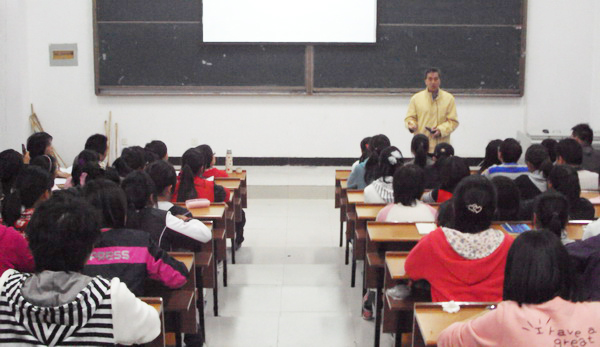 范东升教授的讲座以珍贵的图片和极富感染力的语言开始,介绍了他赴英国哈罗盖特进行学术交流的心得体会。从各国不同方式的英语教学着手,讲述了在文化认知问题上,中国学生学习外语的弊病,并分析其问题的根源,还讲述了在待人礼节、生活习惯和生活方式等方面中英两国之间文化的差异。讲座结束后,范教授与师生进行了互动交流,同学们积极发问,提出了许多对异国文化的疑惑以及学习英语常见问题等等。范教授精彩纷呈的解答把现场气氛推向了高潮。