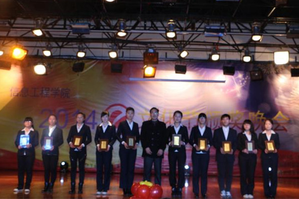 晚会伊始,马琪为致辞。他指出,应该通过专业和课程建设改革、师资队伍优化、实践教学拓展以及教学质量监控等措施,努力提升人才培养质量;并希望获奖的学子们再接再厉、再创佳绩。万家华宣读了《信息工程学院2014年学科竞赛表彰决定》,他们分别是网络技术大赛的一等奖得主叶权;计算机组装调试技能大赛专业组一等奖得主曹阳阳,优秀奖得主孙兴龙,非专业组一等奖得主吕洋;程序设计大赛中12人获得一等奖,10人获得二等奖,11人获得三等奖。王国明教授为网络技术大赛、计算机组装调试技能大赛和程序设计大赛中的获奖学员代表颁发证书。