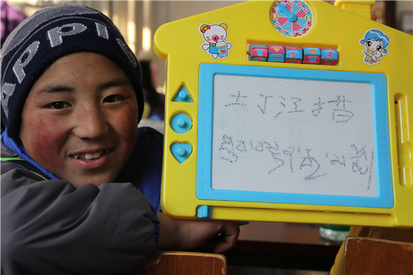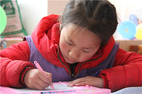 bat365青年志愿者协会格桑花工作站的40名志愿者们早已做好了准备,他们为孩子们端上热喷喷的饭菜。饭后,孩子们以精彩的藏族舞蹈、高亢的藏族歌曲表达了他们的快乐。志愿者们还为孩子们带来了精彩的舞蹈——《小苹果》,孩子们也跟着学起来,简单的肢体动作,使得孩子们纷纷向自己的小伙伴们炫耀舞技,灿烂的笑容洋溢在孩子们的脸上。表演结束后,志愿者们为孩子们准备了拓展活动,有踢足球、打篮球、打羽毛球等体育项目,也有两人三足、桃花朵朵开等游戏项目。文青巴吾是其中的一名三年级学生,在提到本次体验感受时,他说:“很喜欢这里,玩得很开心。谢谢大哥哥大姐姐们带我们一起做游戏。”最后,青年志愿者协会为青海的每一个小朋友赠送了一份小礼物,代表着格桑花站的每一位工作人员的爱心。