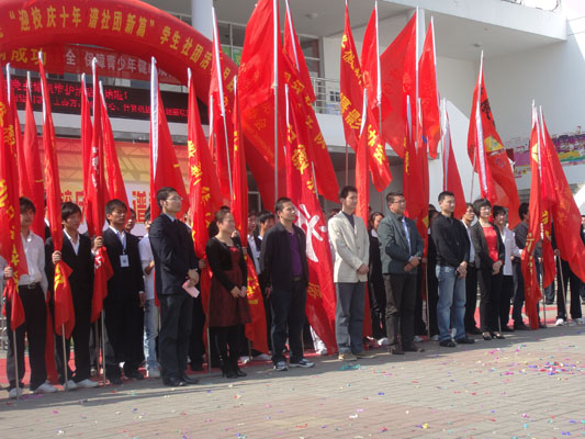 10月21日,我院“迎校庆十年 · 谱社团新篇”大学生社团活动月启动仪式在翰林广场隆重举行。教务处副处长朱兆健,体育部副主任王士赵,学生处副处长、团委副书记马琪,社团联合会指导老师王帆,校学生会指导老师吕翔,外国语学院团总支书记钱颜娇以及校学生会、二级学院学生会、社团联合会及各学生社团等学生组织代表参加了本次启动仪式。