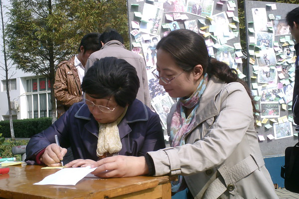 展板上的一张张笑脸,青春又富朝气,有的含蓄内敛,温柔妩媚,有的帅气阳刚,爽朗豪放。一张张笑脸都代表着对新华的深深祝福和美好期盼。数百名新华学子也来到活动展地,为华园签名赠心语,在便笺上虔诚地写下自己的名字和祝福,张贴在展板上。