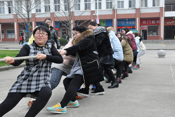 活动在图书馆风景广场前举行,随着工作人员的一声令下,100余名女教职工分为四个代表队循环进行拔河比赛,最终辅导员、行政人员连队取得第一名,院长方达宪为每一位女教职工颁发了节日纪念小礼品,热烈欢快的场面在初春的华园俨然构成了一道亮丽的风景线。