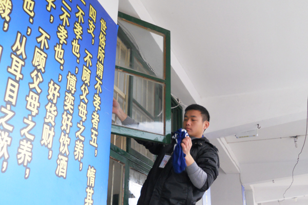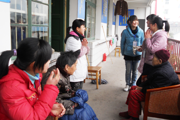 早晨八点,慰问小组成员准备就绪,经过约1小时的车程到达敬老院。院长向大家表示了热烈欢迎,并介绍了敬老院目前情况。随即,大家进行了现场分工,有的为刚刚起床的老人穿衣叠被,有的帮助擦拭窗户,有的拿起扫帚清理地面,忙的热火朝天。清扫工作结束后,小组成员与老人们来到院子里拉起了家常,大家你一言我一语地亲切交流,嘘寒问暖,倾听老人心声。同学们还带来了精彩的文艺演出,有的唱起了家乡的戏曲,有的演唱了拿手的歌曲,有的为老人们带来了笑话,整个院子里其乐融融,倾情的演出博得了老人们的阵阵掌声。临近中午时分,大家为老人们的午饭做好服务,助理们的细心体贴舒展了老人的脸庞,温暖了老人的心。慰问结束之时,大家与老人们亲切合影留念,并依依不舍地挥手告别。