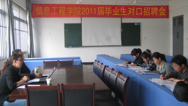 4月14日下午,信息工程学院在会议室举办2011届对口专场招聘会,未就业的同学积极参加,河北吉讯通信技术有限公司招聘专员为同学们进行了详细的宣讲。
