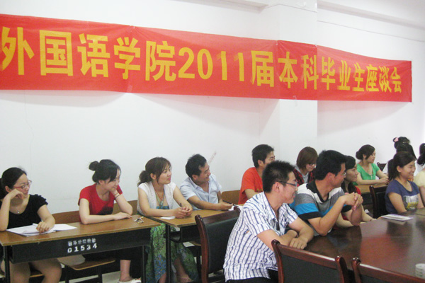 为了解毕业生就业现状,借本科毕业生返校论文答辩的时机,5月20日中午,外国语学院召开2011届本科毕业生座谈会。外国语学院教学副院长王志宏、行政副院长李洁参加了本次座谈会。