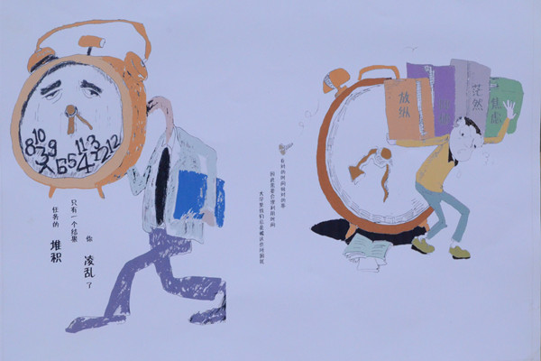 此次活动共收到来自各班级的百余幅作品,经评委老师审核,挑出近40件作品展出,作品多以大学生活为创作背景,以人们常见的心理现象为创作基础,运用图文并茂的形式,从不同角度展现当代大学生的心理状况,诠释心理健康知识的重要意义,形成了积极健康的精神导向。此次心理漫画展将心理健康工作与动漫学院学科专业特色有机结合,内容丰富多彩,形式新颖,内涵丰富。既反映出健康向上、格调积极的正能量,又以动漫的方式幽默地表达,避免了生硬的说教,让观众们耳目一新,喜闻乐见,吸引了众多师生驻足观看。