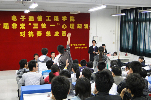 为营造积极和谐的校园氛围,进一步普及心理健康知识, 5月23日中午,电子通信工程学院在D313阶梯教室举办“非常三缺一”心理知识对抗赛总决赛。