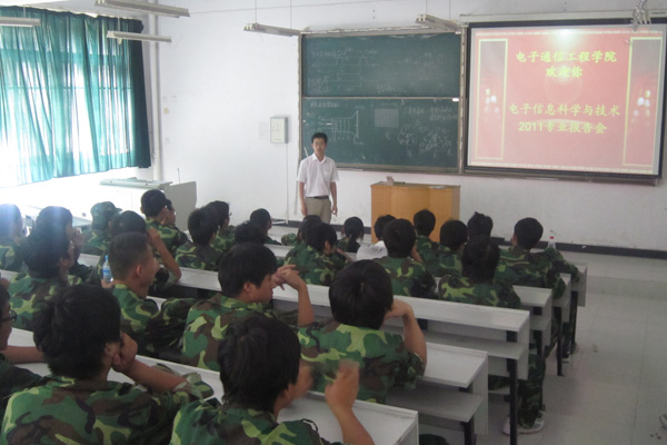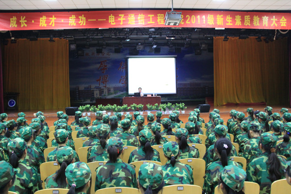 为了从起点抓好对2011级新生的素质教育工作, 9月4日晚六点半,电子通信工程学院在学校大礼堂召开了2011级新生素质教育大会。此次大会以“成长 成才 成功”为主题,由电子通信工程学院行政副院长操宏华主讲,电子通信工程学院部分军训教官及近900名11级新生聆听了讲座,讲座历时三个小时。