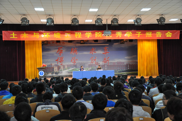 10月26日下午,应土木与环境工程学院邀请,2006届优秀学子林磊在大礼堂为土木学院广大师生做了一场生动的报告。土木学院全体教职员工、2011届毕业生及部分其他年级学生代表参加了报告会。
