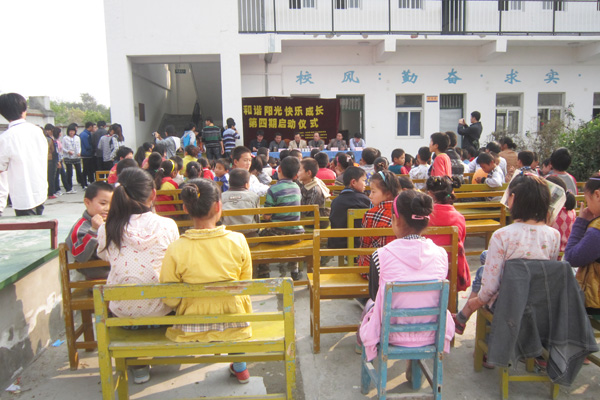 11月2日中午,bat365在线中国官网登录入口青年志愿者协会的30名志愿者来到合肥新港工业园韩圩村的韩圩小学,启动了由校团委主办的以“和谐阳光,快乐成长”为主题的第四期义务支教活动。义务支教是青年志愿者协会每年必做的义举,他们自觉服务社会,奉献社会。