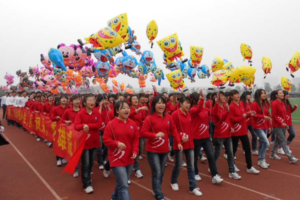 在接到举办校运会的通知后,动漫学院领导就开了动员大会,孙家启院长多次强调要高度重视校园运动会的各项工作,特别在方阵出场上展现动漫学院的特色和风采;全院师生高度重视,方案在第二天就出炉了,运动员的选拔和训练,运动会的宣传,后勤保障,工作监督等都有详细的方案,分工明确责任到人。针对开幕式方阵出场效果这个问题朱诵贵副院长还多次召开相关工作人员会议,讨论了多套方案,最后敲定,然后就是分头准备。从租借服装道具,到口号的筛选和确定,领导和老师带领学生会的同学加班加点。经常是晚上九点以后了,动漫学院的院长办公室、行政办公室和会议室还是灯火通明,行政副院长亲自带领工作小组在这里开会讨论工作的细节,同学们在这里手工制作开幕式需要的道具,开幕式方阵前面的变形金刚模型,动漫学院看台上拉拉队方阵中的动漫LOGO等都是同学们亲手制作。