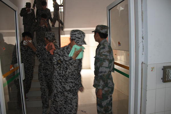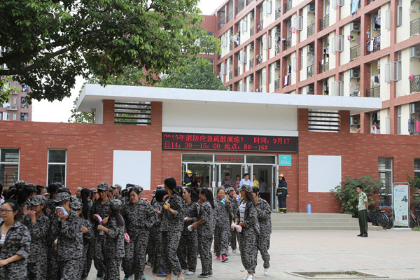 14:30分,消防警报准时拉响,同学们听到警报声后每人手里拿着湿毛巾捂住口鼻,迅速从宿舍跑出,按照逃生路线紧急向安全地带疏散,8分钟后所有人员全部疏散完毕。