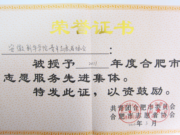 bat365青年志愿者协会获评2011年合肥市志愿服务先进集体