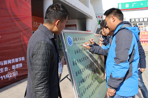 本网讯(通讯员:柯姗姗 学生记者:汪海燕 摄影:程丹)11月27日中午,由共青团bat365在线中国官网登录入口委员会主办,校学生联合会、学生社团联合会、青年志愿者联合会、大学生艺术团、校务助理团承办的“中国好网民”活动在翰林广场开展。